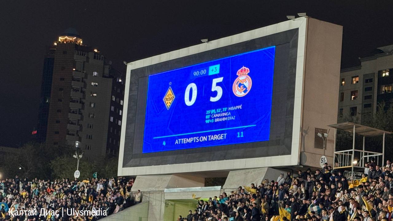 Алматыдағы Орталық стадионда өткен УЕФА Чемпиондар лигасының жалпы кезеңіндегі «Қайрат» пен мадридтік «Реал Мадрид» арасындағы кездесу аяқталды.