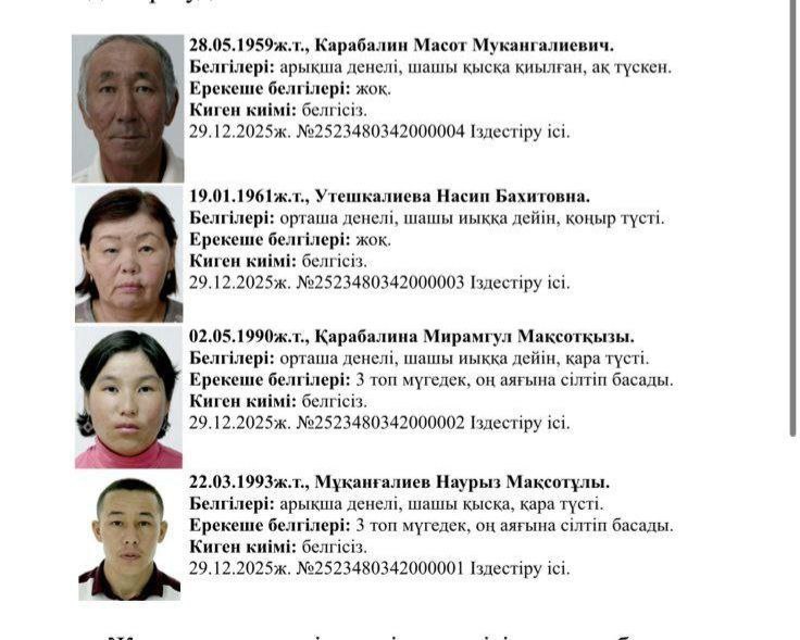 Полиция мен жақындары отбасы мүшелерінің өміріне алаңдаушылық білдіруде. Тергеу жалғасып жатыр.