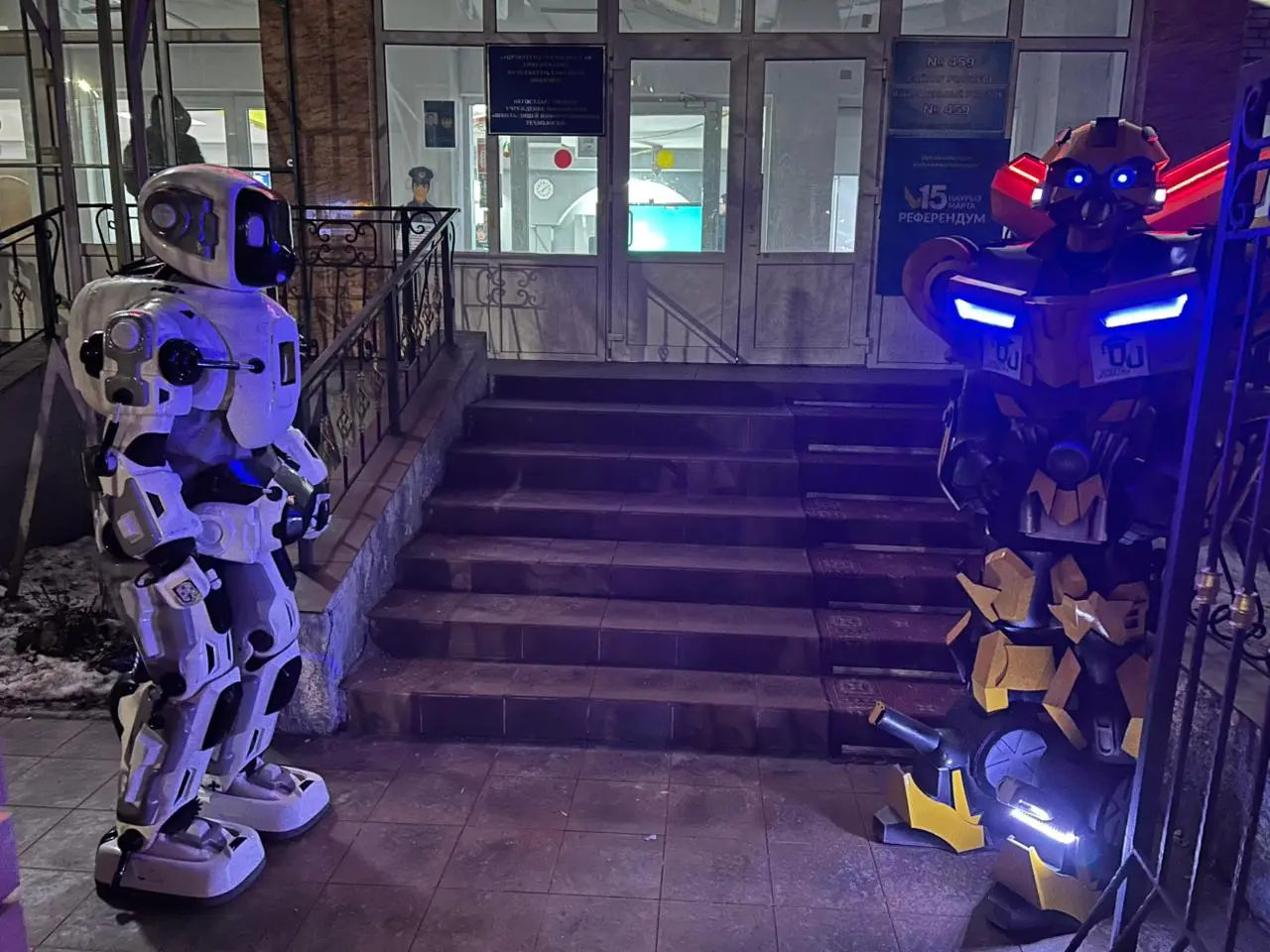 Легендарные трансформеры — машины-пришельцы, любимые взрослыми и детьми, стали неожиданным сюрпризом для уральцев, пришедших на референдум. Двухметровые роботы появились на участке №459, расположенном в в Казахстанском университете инновационных и телекоммуникационных систем . Такую инициативу особенно оценили жители города, взявший с собой детей, передает zakon.kz.