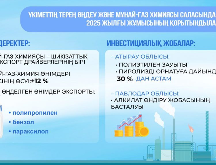 Сурет:gov.kz 2025 жылы Қазақстанда мұнай-газ химиясы саласы тұрақты дамып, өнім өндіру көлемі өткен жылмен салыстырғанда 12%-ға артты. Энергетика министрі Ерлан Ақкенженовтің хабарлауынша, саланың дамуы экономиканың шикізатқа тәуелділігін азайтуға және экспорттық әлеуетті арттыруға…