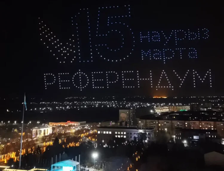 Қонаевтағы дрон-шоу: Қазақстан картасы, референдумға шақыру және Наурыз мерекесімен құттықтау