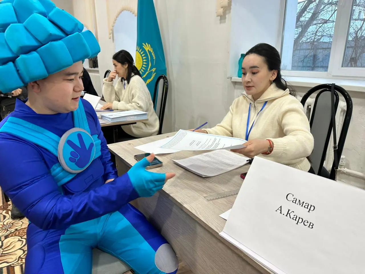 Мульткейіпкердің костюмін киген жас жігіт өзінің жеке басын тек учаскелік референдум комиссиясының мүшелеріне ғана ашып, дауыс берушілер тізімінде белгілену кезінде таныстырды.