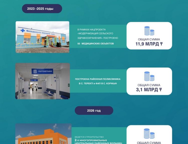 2023 жылдан бастап облыста денсаулық сақтау саласын дамыту қарқынды жүргізілуде. Осы кезеңде 52 жаңа медициналық…