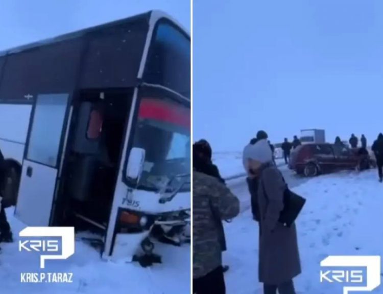 Жамбыл облысындағы жол апаты: Автобус пен жеңіл көлік соқтығысып, бір адам мерт болды