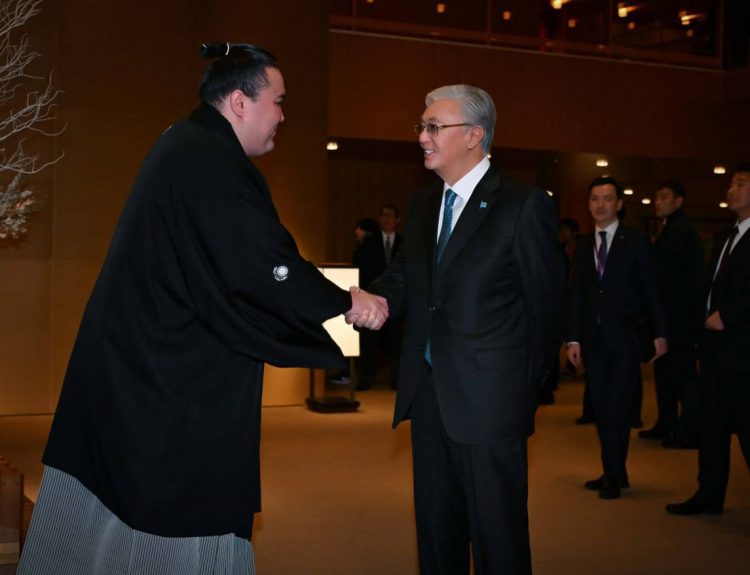 Президент Қасым-Жомарт Тоқаев Жапониядағы сапары барысында сумо балуаны Ерсін Балтағұлмен кездесті